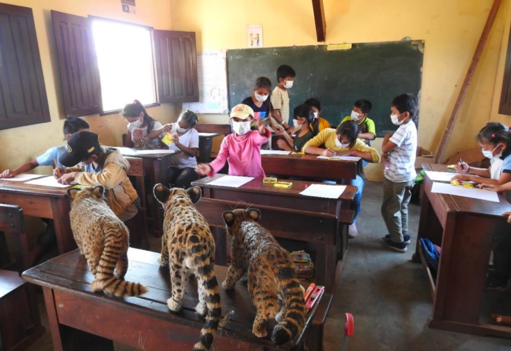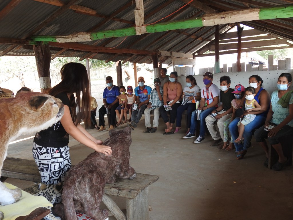 Para promover la coexistencia y clarificar la información sobre los félidos, como PIF realizamos talleres en las comunidades, con replicas tamaño real de los félidos bolivianos.